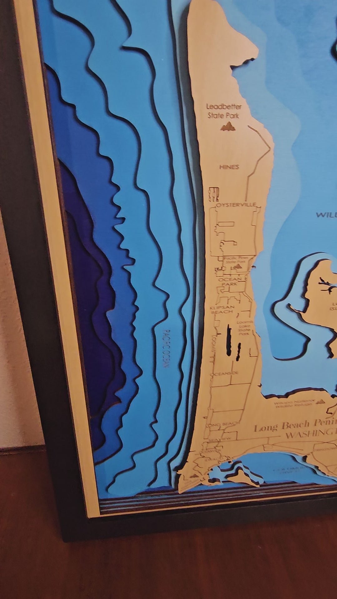 ๐ŸŒŠ Long Beach Peninsula, Washington | 8-Layer 3D Bathymetric Laser-Cut Wood Map
