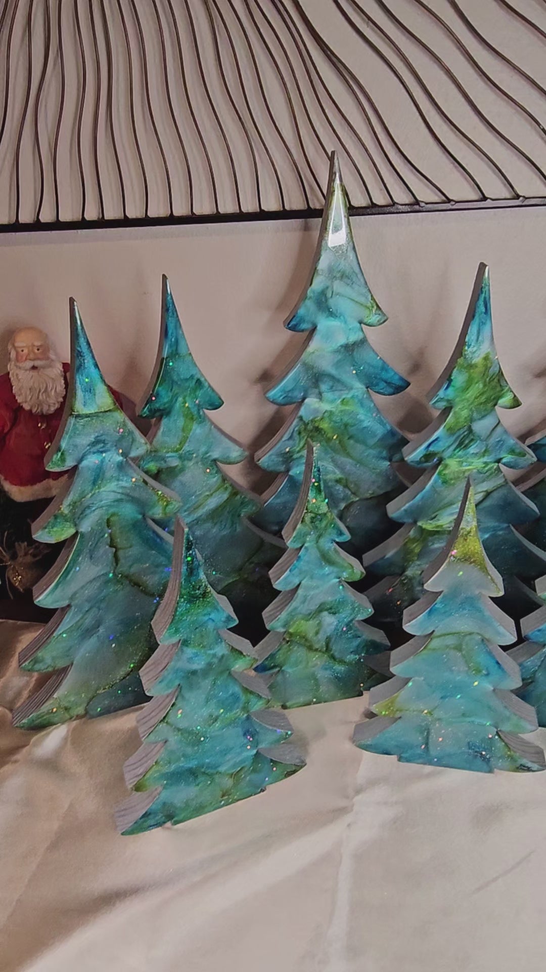 Handmade Blue Green Silver Resin Christmas Trees Holiday Mantelpiece 3 Sizes