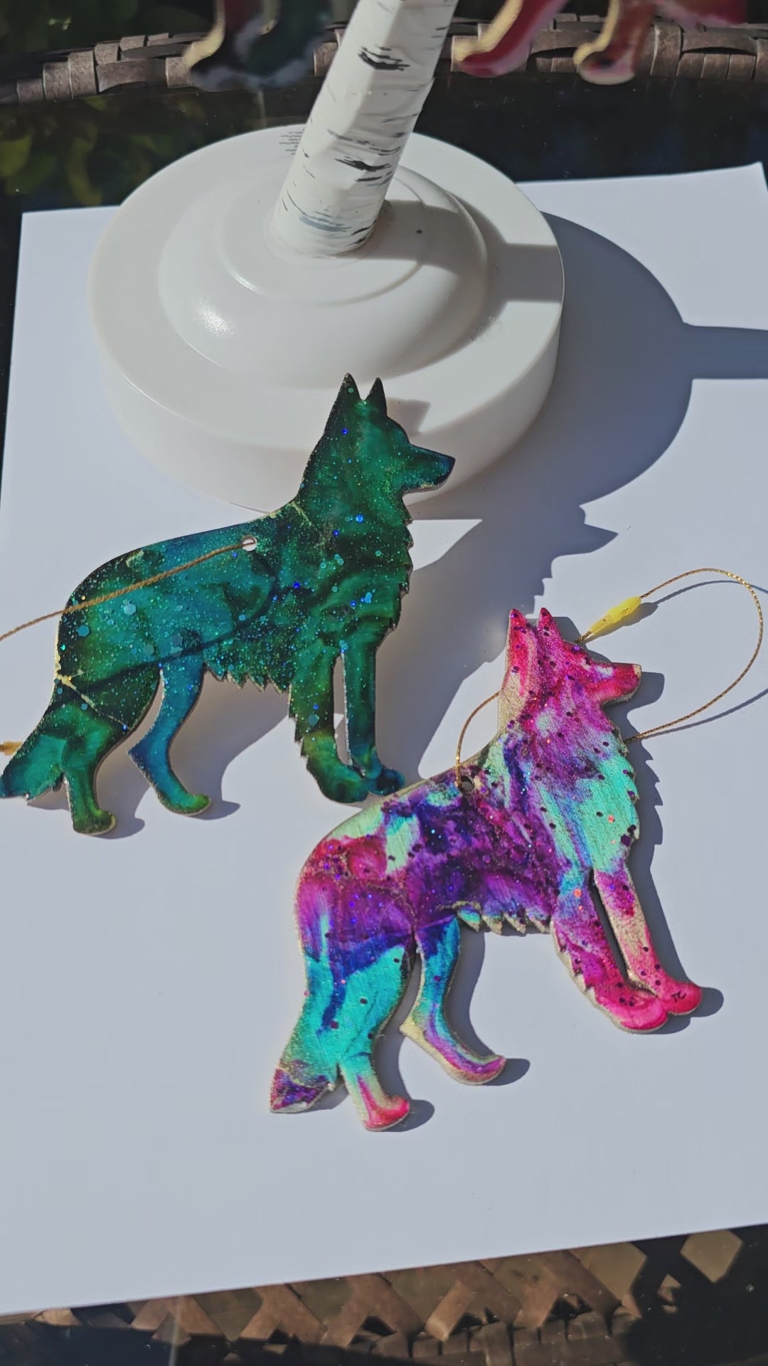 Add some puppy love to your Christmas tree with our handmade German Shepherd Dog ornaments! Crafted with lightweight wood and colorful resin, these sparkly decorations feature metallic and glitter accents. Sure to delight and make your furry friend wag their tail! Hangs from a metallic cord and painted on the back. Measures approx. 4" x 2.25" x 1/8" thick.